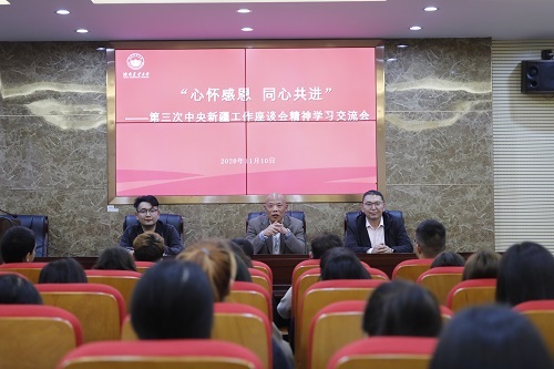 11月10日晚,湖南农业大学“心怀感恩 同心共进”第三次中央新疆工作座谈会精神学习交流会在第十教学楼北203会议室召开。党委学生工作部、人民武装部副部长夏棣稀、新疆内派管理服务教师牙森·阿西木、少数民族辅导员艾科拜尔·约麦尔及新疆籍学生代表参加了本次会议。