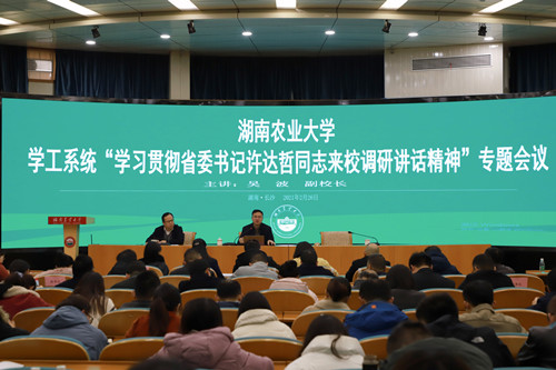 2月26日上午,学工系统在生科楼国际会议厅召开会议,专题学习省委书记许达哲同志来校调研讲话精神。党委委员、副校长吴波出席,学工系统相关职能部门全体人员、全体辅导员参加学习,会议由党委学工部部长翁波主持。