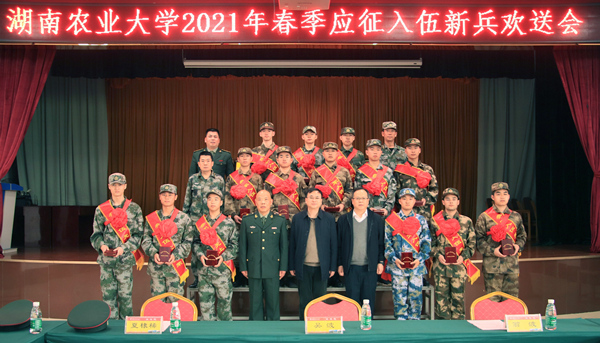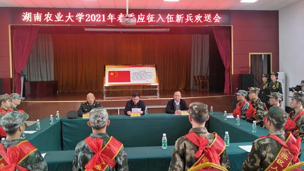 3月15日上午,我校2021年春季应征入伍新兵欢送会在芙蓉区役前训练基地举行。学校党委委员、副校长吴波,党委学工部、人武部部长翁波,副部长夏棣稀及今年春季批准入伍的大学生新兵参加了会议。
