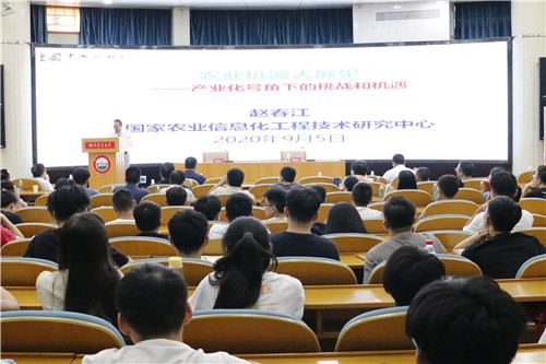 为了增加同学们对专业的热爱,提高对农业机器人的认知,9月5日下午,国家农业信息化工程技术研究中心主任、研究员,国家农业智能装备工程技术研究中心首席专家赵春江院士在生科楼国际会议厅为机电工程学院、研究生院、湖南农业大学科学技术学会开展“农业机器人展望”为主题的学术讲座。