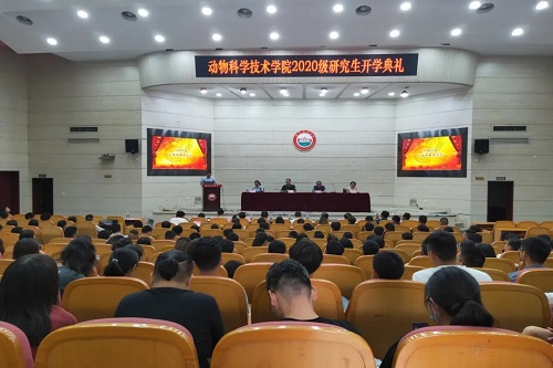 2020年9月15日下午,动物科学技术学院研究生开学典礼在我校图书馆大成厅举行,本次典礼由动科院党委副书记肖露主持。贺喜院长、王奎武书记、肖芬副院长,各学科领衔人、导师及助手、新生班主任、研究生工作秘书、研究生辅导员出席,2020级全体研究生到场参会。