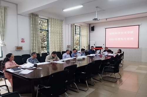 为积极响应教育部推免政策,增进同学们对自身的认识,明确自己未来的发展方向。9月24日上午,动物科学技术学院于二教221举行2021届推荐优秀本科毕业生免试攻读研究生答辩会,此次答辩会的评委有贺喜院长、王奎武书记、肖露副书记、肖芬副院长,学术委员会委员肖调义、范志勇、胡毅、黄兴国、谭碧娥、沈维军等教授,以及参加推免答辩会的9位优秀本科生。会议全程由肖露副书记主持。