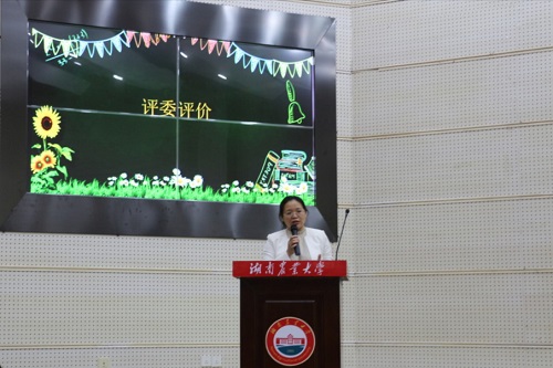 在所有参赛选手展示完毕之后,易芳老师对选手们的表现进行了精彩点评。她就选手们的整体表现给予了充分肯定,同时指出了参赛选手在现场授课、教学方法、课堂调动、教案设计、板书规范以及时间把握等方面所存在的问题,并给予了一定指导。