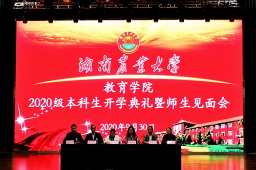 9月30日上午,教育学院2020级本科生开学典礼暨师生见面会在大礼堂举行,学院党委书记周晓红、院长郭丽君、党委副书记兼副院长龙梦晴、副院长温圣贤、副院长王慧、办公室主任谭浩、教务秘书王铃及各系代表老师出席会议,学院全体辅导员及2020级全体新生参与会议。会议由龙梦晴副书记主持。