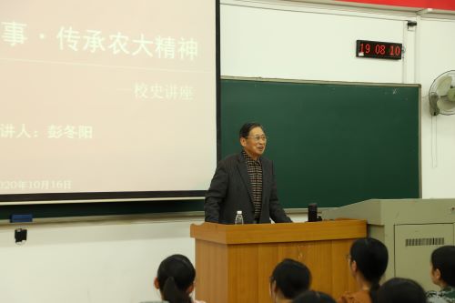 为让新生了解农大历史,培养新生农大精神,10月16日晚,人文与外语学院于九教南502顺利举办了以“讲好农大故事,传承农大精神”为主题的校史讲座。关工委彭冬阳老师受邀为主讲人出席讲座,2020级全体新生到场听取此次讲座。