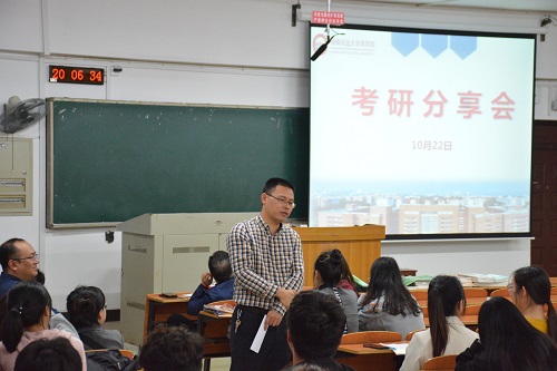 10月22日晚,商学院学风建设推进会暨2017级考研分享会在九教北401顺利举行。参加本次分享会的有商学院院长杨亦民教授、商学院党委副书记丁彦、研究生院招生办主任刘碧琼、2017级辅导员李文涛、2020级研究生代表李进城、苏岳峰、蔡阳同学以及2017级报名考研的同学们。