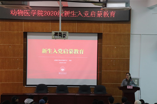 10月27日上午,动物医学院2020级新生入党启蒙教育讲座于动医楼T形教室召开。动物医学院党委副书记首道出席讲座,2020级全体学生参加讲座。讲座由首书记主讲。
