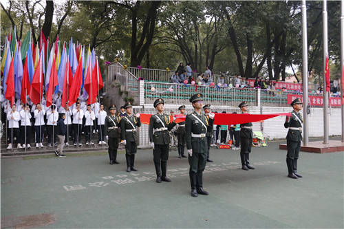 在震撼人心的军鼓表演后,开幕式进行到最庄严的时刻——升旗仪式,全体肃立,奏唱国歌、校歌。副校长易自力致开幕词,他向全体运动员、教练员、裁判员及广大工作人员表示诚挚的问候与感谢,并期盼能在本次运动会中看到运动员们顽强的意志以及团队意识和协作精神。