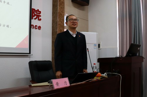 黄力围绕“青年应做有家国情怀的团学干部”,回顾了中国共产党的革命岁月,讲述了毛泽东同志的亲友情怀、人民情怀和爱国情怀,激励同学们将个人志向融入家国使命之中,勇敢肩负起民族复兴的重任。现场,黄力邀请与会学生和他一起朗诵《沁园春·长沙》。“恰同学少年,风华正茂;书生意气,挥斥方遒”,现场气氛热烈。