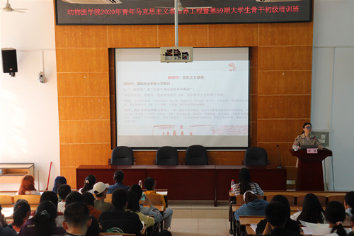11月8日上午8点,动物医学院青年马克思主义者培养工程暨第59期大学生骨干初级培训于动医楼T型教室正式开展。动物医学院党委书记伍小松,党委副书记兼副院长首道,团委书记陈宇科,关工委袁慧老师,组织委员姚文昌,出席了本次培训。培训主要面向19、20级学生干部展开。