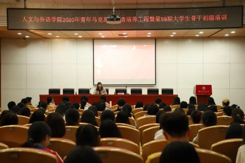 11月14日至15日,人文与外语学院在学海厅如期举办2020年青年马克思主义者培养工程暨第59期大学生骨干初级培训。本次培训邀请到学院党委书记林丽娅、正处级组织员汤帮耀、校宣传部余婷婷、校团委覃茜和东方科技学院熊阳俊老师为大家讲课。