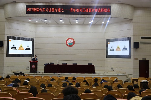 11月20日下午,我校公共管理与法学学院2017级毕业生综合实习讲座于图书馆大成厅隆重举行。本期讲座的主题为“青年如何面对和选择职业”,由芙蓉区市容环境卫生维护中心主任张军主讲、公法院周为老师主持,公法院2017级学生参加讲座。
