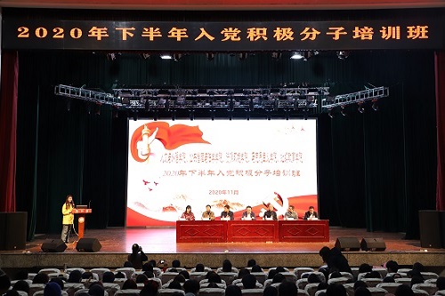 11月21日下午,资源环境学院、公共管理与法学学院、人文与外语学院、马克思主义学院联合举办的2020年下半年入党积极分子培训班在大礼堂顺利开班,共482名学员参加本次培训。校党委委员、组织部部长兰勇,继续教育学院党委书记金可元,资源环境学院党委书记周江,公共管理与法学学院党委书记莫华,马克思主义学院院长、党总支副书记王健,人文与外语学院组织员汤帮耀,人文与外语学院党委委员、副院长唐琳出席仪式。唐琳主持本次开班仪式。