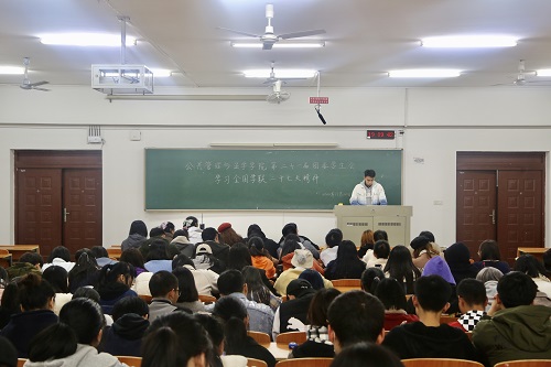 11月22日,公共管理与法学学院团委学生会在我校第九教学楼就“全国学联二十七大会议精神”进行集体学习。我院团委学生会全体成员参加学习,院团委副书记杜佳晶同学主持,院团委副书记夏威同学负责领学并讲解会议精神。