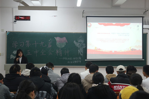 为贯彻学习党的十九届五中全会精神,11月26日下午,动物医学院2020级第二期青政理论学习于第十教学楼开展。各班班委担任主持人,20级全体同学参与此次学习。