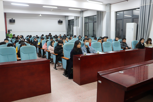 摆引渡之河,过四级之关。为了提高同学们学习英语的积极性,帮助同学们顺利通过四级考试,化学与材料科学学院11月30日晚于第15教624召开了英语四级考试动员大会 。学工组老师何恩祺、王山,专业英语教师罗文婷,优秀学生代表周晴、雷隆慧,以及18、19级部分同学参与会议。