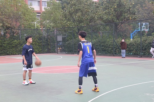 赛前,场边早已围满了观众、以及各队的后勤保障人员,他们高声呐喊,为球员助威,球员们同样摩拳擦掌,天气虽凉,在场同学却早已热血沸腾。两场比赛正式开始,各位球员迅速进入状态,他们手感火热,每一次出手都十分慎重。上半场结束,20级和17级那边比分焦灼,但18级这边赛况是18级经济投资联队已经大比分领先了,但是中场休息时,不管是20级、17级还是18级CFA金融农经联队,他们都不抱着一丝放弃想法,决定在下半场放手一搏,冲刺总决赛,而18级经济投资联队这边也没有放松警惕。场边观众则更是激情澎湃,大声为自己支持的队伍呐喊助威。下半场的哨声响起,球员迅速上场。在双方得分你追我赶的过程中,17级身着23号球衣的球员在一次拼抢篮板的过程中小腿抽筋了,他痛苦的坐在地上,后勤队员立马上来治疗,他迅速调整后再次重回球场。最后,经过激烈的比赛,产生了两支队伍晋级总决赛他们分别是20级连队和18级经济投资连队,双方球员赛后友好握手离场。