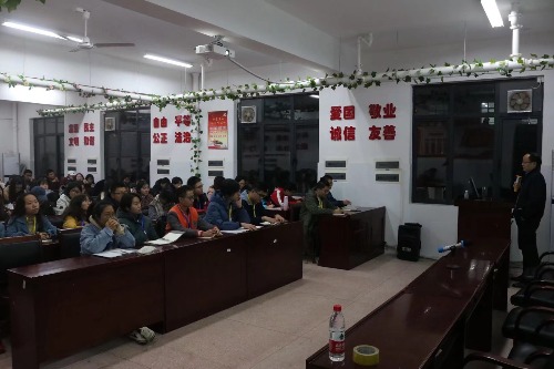 学工组刘洋老师以“养成良好的学习习惯、提升专业素养、促进高质量就业”为主题进行讲座。他向学生干部们普及了就业与勤工助学工作相关的知识,勉励同学们应具备自我学习能力,学会如何处理好学习、工作和生活之间的矛盾,要在大学生涯中开阔视野、积极参与课内外活动,要磨练自身意志、提升抗压能力、提高思想觉悟,养成先就业再择业的就业观,为实现中华民族伟大复兴的中国梦贡献自己的力量。