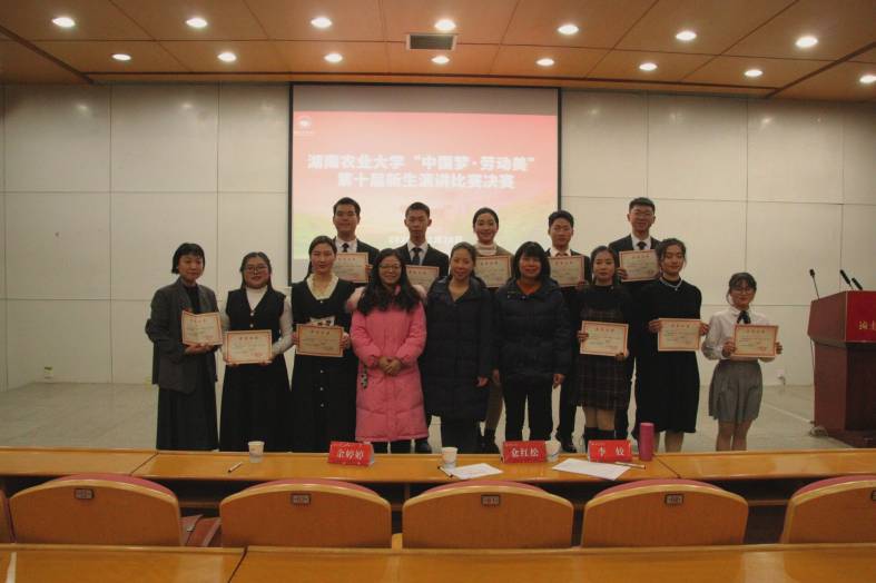 2020年12月30日晚,湖南农业大学“中国梦·劳动美”第十届新生演讲比赛决赛在八教学海厅举行。11位参赛选手及各个学院代表同学进入本次决赛。本次比赛的评委老师为校团委副书记、党委学生工作部副部长李姣老师、党委宣传部副部长余婷婷老师、子弟小学校长、国家级普通话测试员仓红松老师。