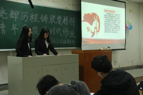 3月18日下午,我院在第七教学楼举行了以“光辉历程铸脱贫精神,青年奋发承时代伟业”为主题的春季学期第一次青年政治理论学习会,参会人员有20级全体同学。