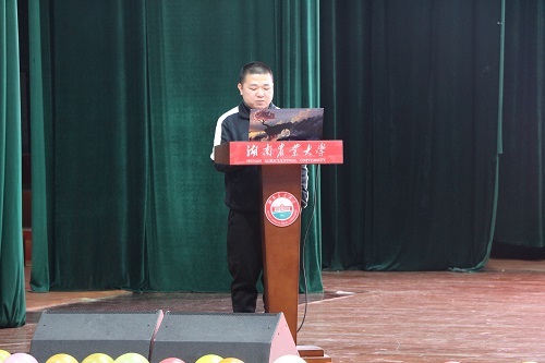 接着,学院2017级动物医学教育班刘俊君向同学们分享实习经验。他谈到,每一次实习都是将理论与实践融会贯通的机会。我们一定要抓住机遇、活用专业、紧靠平台、拥抱梦想。在不断的实习实践中去验证专业知识,收获新的理论,然后再用新的理论和知识去开展新的实践,从而实现阶梯式的稳步成长。