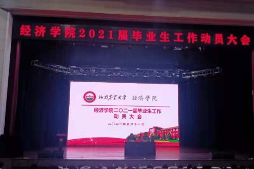 5月11日,经济学院2021届毕业生动员大会在大礼堂举行,大会由17级辅导员汪子一主持。学校武装部军调科长雷志敏、经济学院党委副书记吴峰、心理专干王江、就业专干张新宇以及学生办公室卢红辉出席大会。