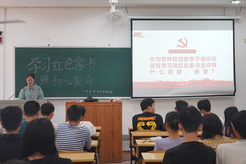袁隆平院士的家书感谢母亲为其种下理想的种子,表达了对母亲的思念;毛泽东主席教育子女一定要锻炼意志,趁着年轻多学习自然科学知识;刘少奇同志的家书教育儿子虚心听取同志们的意见,尽显拳拳为民之心;周恩来总理致表兄陈式周的家书,探讨国之大患:“吾国今日之大患,为产业不兴,教育不振”;李大钊同志在狱中仍谋中华民族之解放,其自述彰显铮铮铁骨。学习完红色家书,同学们分小组讨论收获和感受,“一封封红色家书,带给我的不仅是温情与感动,还有先辈们无时无刻不心系国家、心怀人民的大我精神。”计算机三班的吴豪同学这样说。