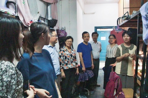 一行人首先来到了丰泽二栋女生寝室。寝室环境乱中有序,同学们正井井有条地整理个人物品,搬寝工作顺利进行。视察的过程中,领导老师与学生进行了谈话,从中了解到,部分毕业生同学已搬离寝室。老师们重点关注了同学们的未来发展问题,了解了同学们的毕业去向,并对未来规划暂不明朗的同学,予以指导与关心。其后,一行人来到丰泽六栋,对男生寝室进行视察慰问。男生寝室正着手进行垃圾分类处理,对寝室进行大扫除。在视察中,领导老师了解到部分海外留学学生已开始了在宿舍的网课学习。同时,也与个别情况特殊、继续考研的学生进行了交流,鼓励他继续加油。临走时,老师们不忘提醒同学注意休息,为次日清晨举行的毕业典礼做好准备,同时为四年学习生活画上圆满句号。