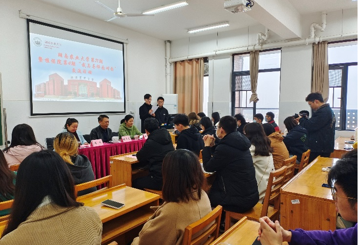 2021年12月10日上午,湖南农业大学植物保护学院第4期“我与导师面对面”交流活动于16教502教室成功举办。植物保护学院党委书记张爱龙、农业昆虫与害虫防治硕士点领衔人杨中侠教授、生物信息学硕士点导师周玮副教授、植物保护学院部分研究生参加了本次交流活动。