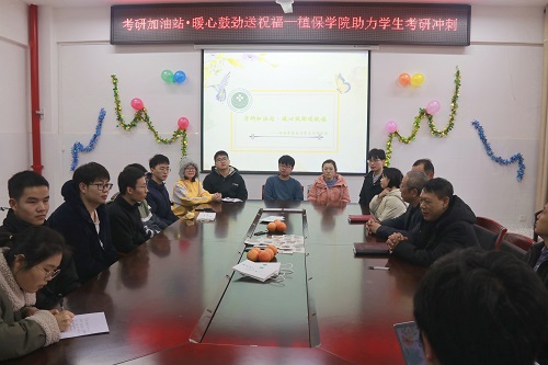12月16日下午,植物保护学院在十六教525举行“考研加油站•暖心鼓劲送祝福—植保学院助力学生考研冲刺”活动,帮助考研学子在紧张复习之余释放压力,以更充足的信心、更饱满的精神迎接即将到来的全国研究生入学考试。学院院长李有志、党委书记张爱龙、正处级组织员林曙、副院长黄国华、党委副书记汤庆熹、全体辅导员、2018级班主任以及考研学生代表参加本次活动。