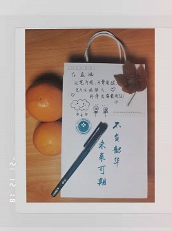 学院为全体考研植保学院学子赠予精心准备的“必成”礼包。礼包包装印有学院院徽、“不负韶华、未来可期”等图样;内有“金榜题名”水性笔、橙子,寓意“考研必成”、“一举成名”、“一战成研”;内有由学校红枫林枫叶制作成的书签,寓意“红红火火”、“一帆风顺”;此外,还有学弟学妹们为考研师兄师姐精心准备的明信片,字里行间饱含对学长们的深切情谊、深情祝福。