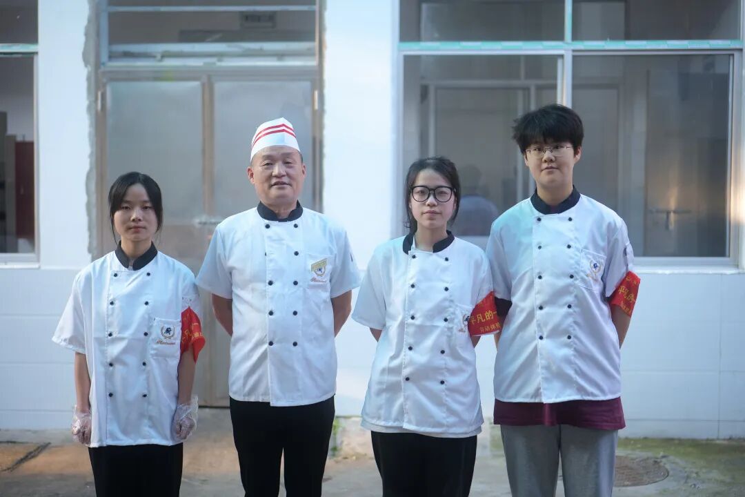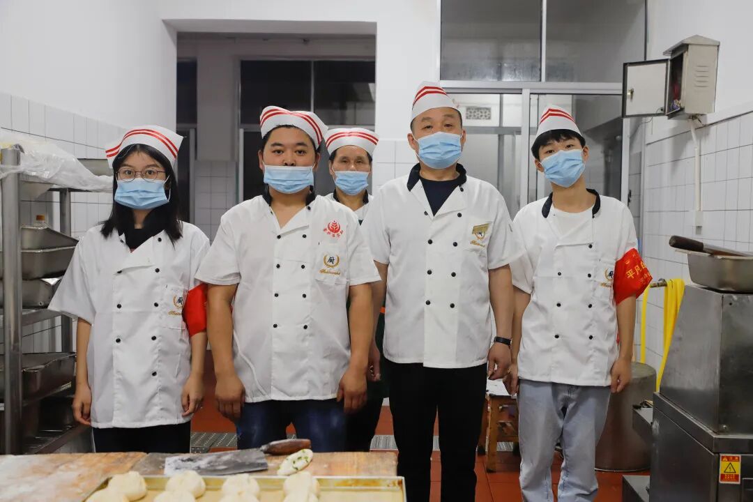 与此同时,曾玮琦、姜罗景、文俐三位同学也在早上6:00的时候赶往食堂后厨和食堂阿姨们一起。