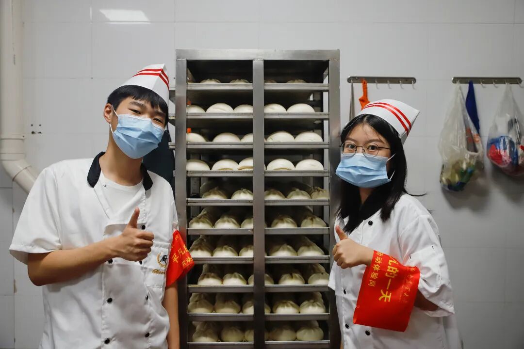 夜未央,昼将至。凌晨3:00,古俊楠和舒雨琴同学就已经赶到芷兰学生一楼食堂进行食堂白案工作,两位同学热情十足,在历经和面、醒发、揉团、上锅蒸制等工序后,第一次自己参与制作的早餐就摆上了同学们的餐桌,过程中两位同学干劲十足,成就感满满。他们表示: