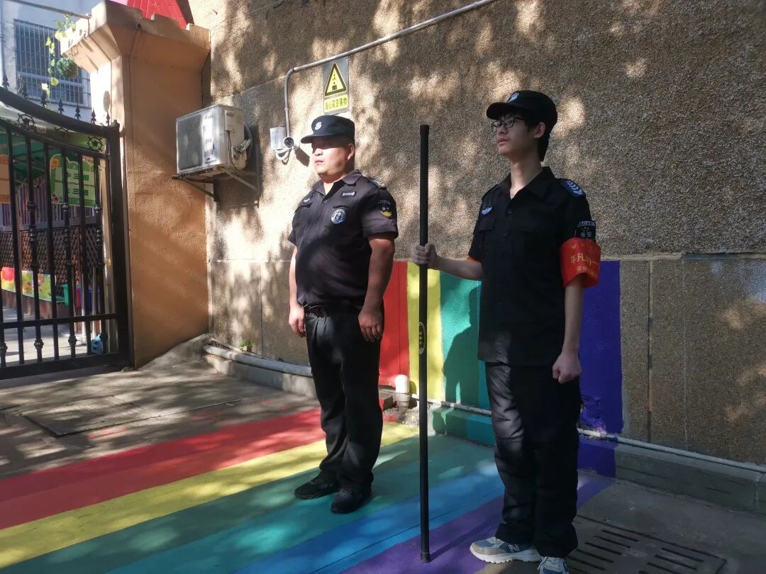 “通过一天的体验 我们了解到质检工作人员的辛苦付出,天还没亮就要检查完当天食材的新鲜程度和后厨的卫生及各个宿舍园区。为了保证我们的食品安全和生活环境,一整天可以日行两万步,工作状态一丝不苟,仔细认真,让我们很敬畏,同时也很感谢学校可以给我们这次机会让我们有了这次经历,感谢全体稽查食药组老师带领我们走过这平凡的一天。”03 校园保卫体验