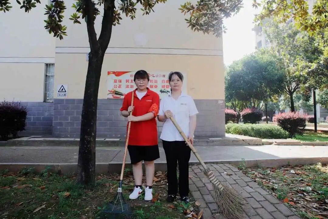 巴雨晴、徐湘娜、吴鹂、刘磊、罗嘉鑫、唐思翔六位同学一起跟随我们的环卫师傅用劳动迎接清晨的第一缕曙光,清扫路边落叶,搬运路面垃圾,清理烟头废纸屑,在他们的努力下校园里的道路又恢复了一尘不染,阳光下的礼堂还是那么庄严肃穆,同学们的校园也依旧干净整洁。