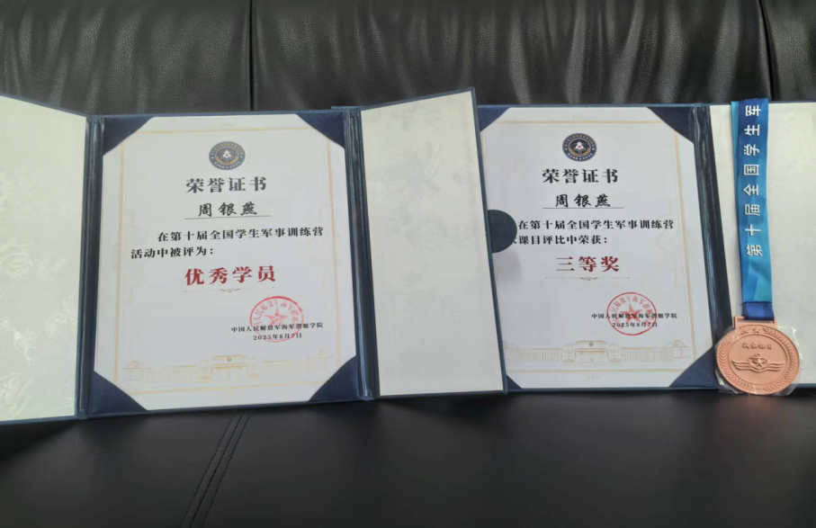 在集训中,我校纠察队队员凭借顽强的意志和卓越的表现,脱颖而出,斩获8项个人及2项团体奖项,为学校赢得荣誉。我校体育学院周银燕同学经过集训考验,并经层层选拔,获得代表湖南省参加第十届全国学生军事训练营比武竞赛的机会,并在此赛事中获得战术科目三等奖,获评“优秀学员”。