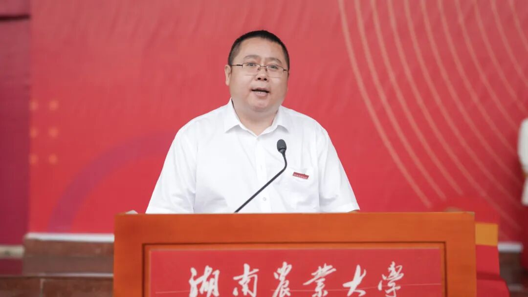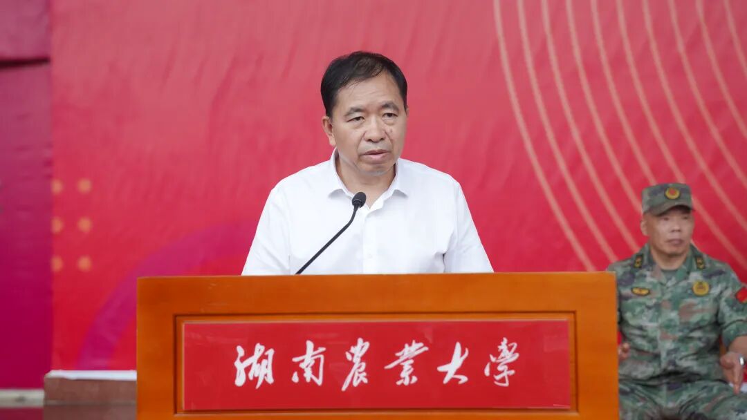 邹学校以“躬耕方寸”为题,向全体新生提出三点希望:在方寸间求“本”,守牢湘农人的精神根系。要以“追根溯源探初心”的执着,将专业学习与粮食安全之需、乡村振兴之要、农民期盼之切紧密相连,让知识扎根于实践的土壤,让初心锚定在兴农的坐标,为后续成长筑牢不可动摇的精神支柱与能力根基;在方寸间求“精”,练就农学人的硬核本领。要以“择一事终一生”的定力,把基础打得更牢实,把技能磨得更精湛,把视野拓得更开阔,让“硬核本领”成为应对农业技术瓶颈、破解生产实际难题的“制胜法宝”,为服务农业发展积蓄过硬的专业力量;在方寸间求“远”,勇担新农人的时代使命。要以“功成不必在我”的胸怀,将专业所长对接农业现代化的时代需求,扛起保障粮食安全的时代重任,书写建设农业强国的奋斗答卷。