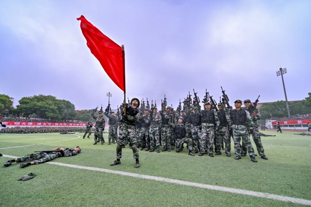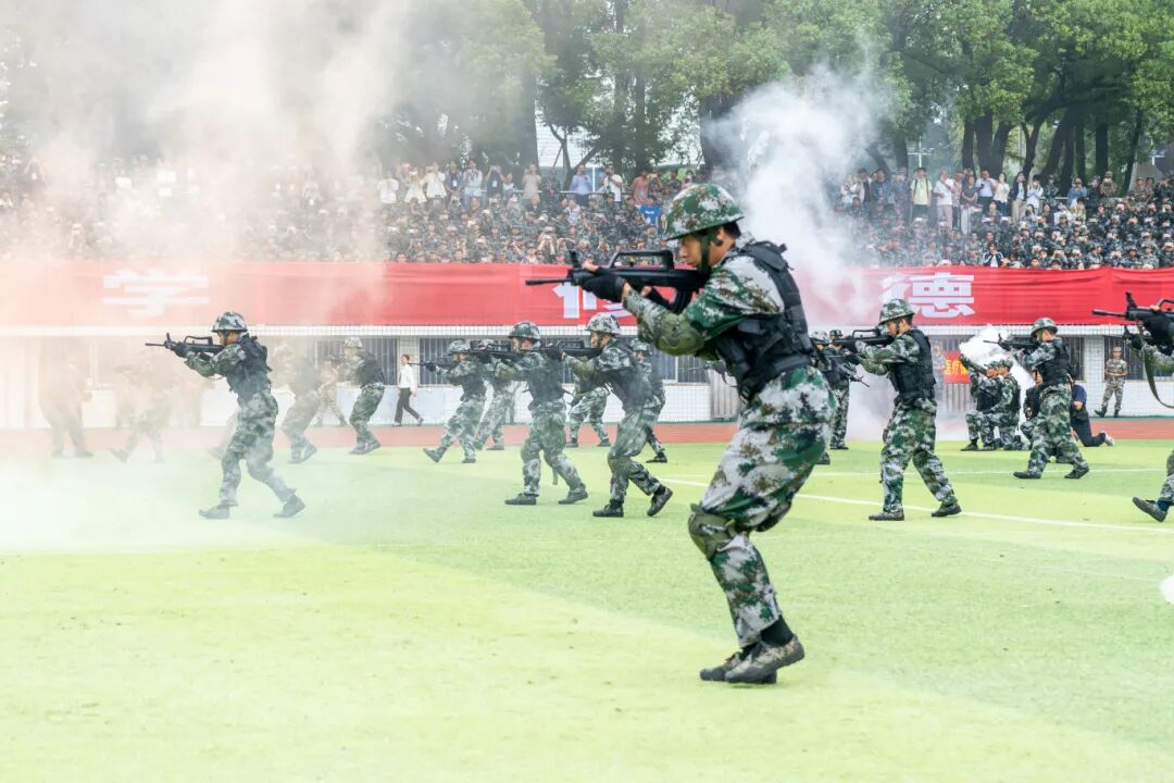 新生军训方阵表演展示了警棍术、刺杀操、军体拳、倒功操、匕首操、综合战术演练等军事技能科目。这场军训汇演,既是对14天汗水淬炼成果的硬核检阅,更是一场跨越80载岁月的精神对话。2025级新同学们自此踏上全新征程,他们将把“军人作风”融入求学每一步,把“家国情怀”刻进成长坐标系,而这份浸满热血的迷彩绿,将成为他们未来直面挑战时最坚实的底气。