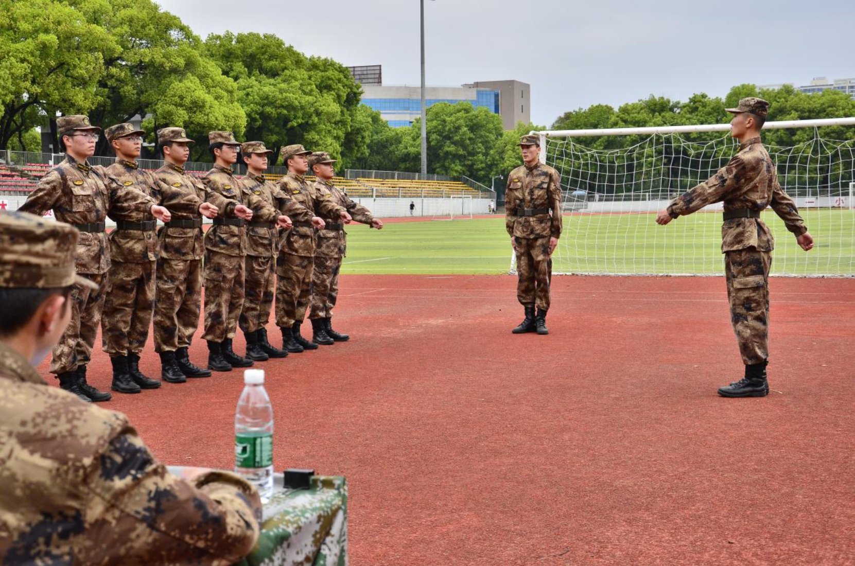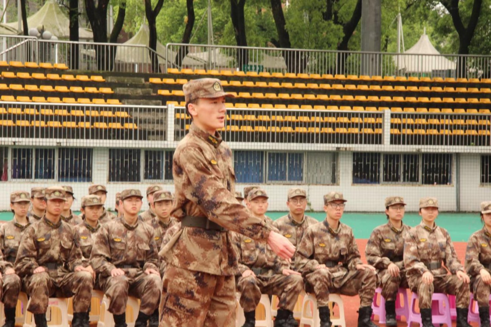 为进一步提升教学能力与队列素养,锤炼教官队伍作风纪律,夯实队员军事技能基础,湖南农业大学第40届学生纠察队于2026 年 4 月 11 日在东田径场举办开学以来首次全队“四会教学”暨队列会操比武竞赛活动。