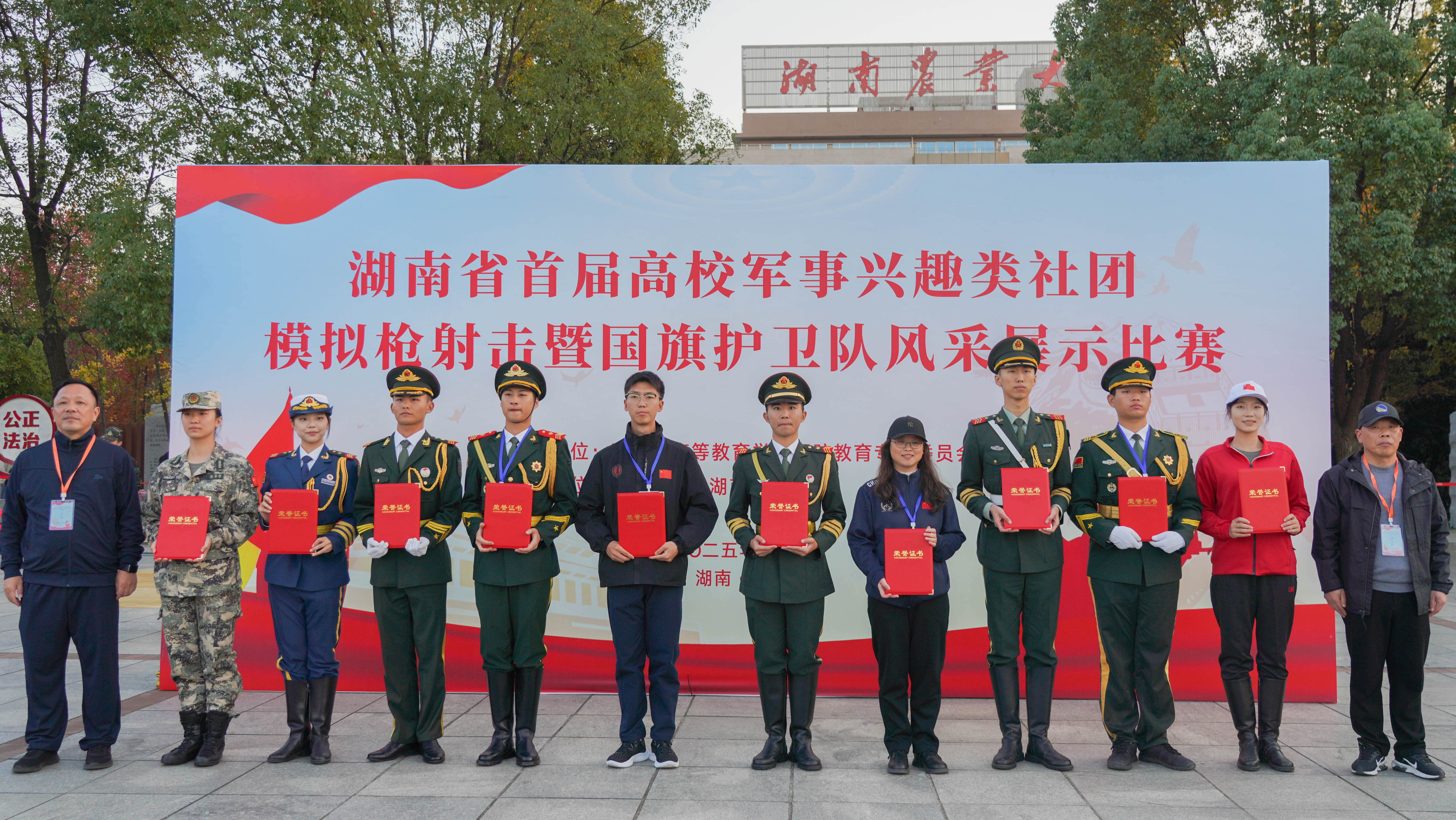 本次比赛由湖南省高等教育学会国防教育专业委员会主办,我校与湖南大学联合承办。经过多轮激烈角逐,赛事各奖项尘埃落定。模拟枪射击比赛中,32名学子荣获个人单项优胜奖,16所高校荣膺团体优胜奖;国旗护卫队风采展示与队列会操比赛中,各有30所高校分获团体优胜奖。其中,我校表现突出,获国旗护卫队风采展示二等奖、队列会操比赛一等奖。