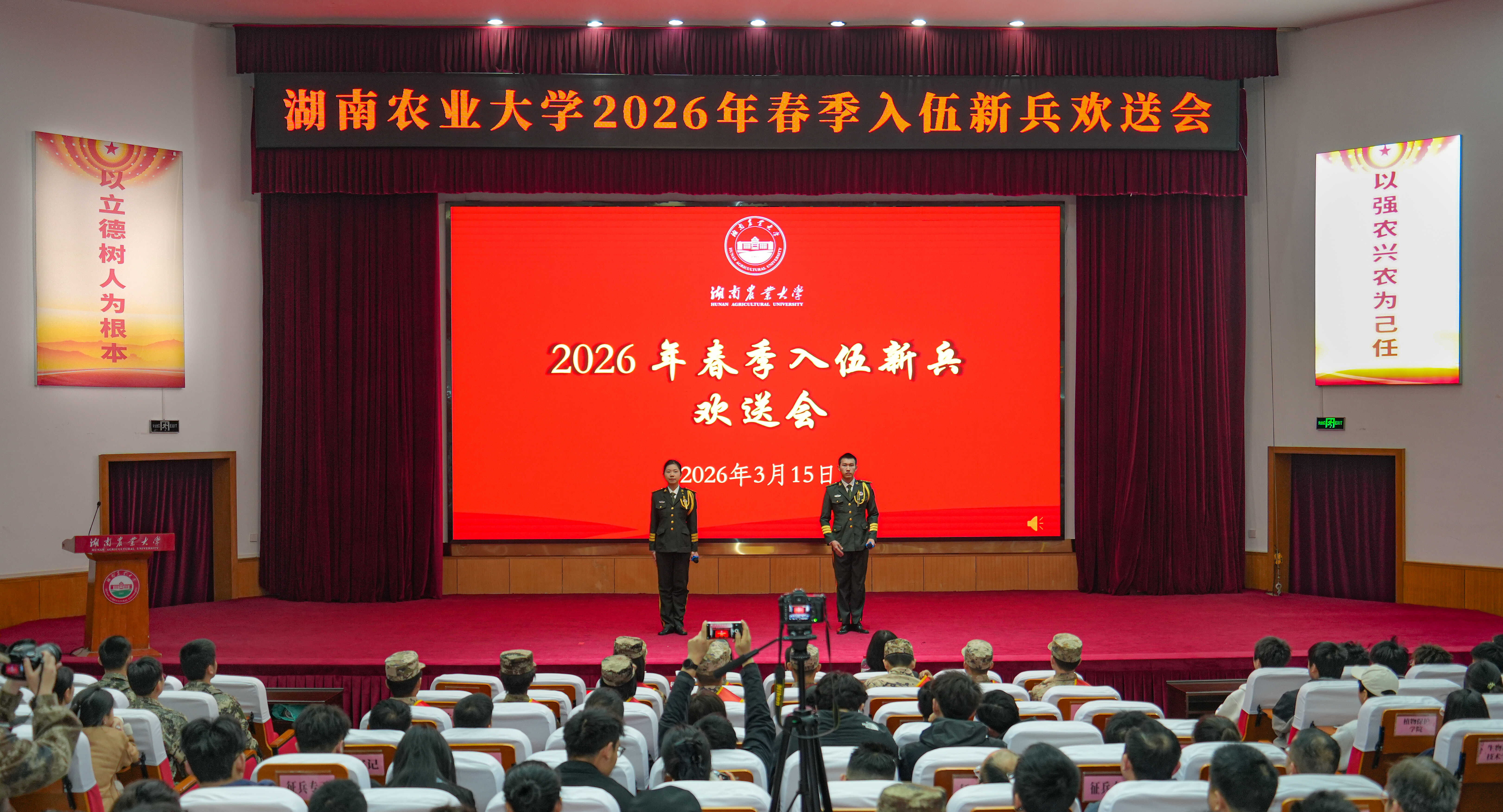 3月15日上午,我校在修业讲堂举行2026年春季大学生应征入伍欢送会。校党委书记兰勇,校党委委员、副校长覃红燕,学生工作部、人民武装部负责人,各相关学院分管学生工作副书记、征兵专干、学生代表以及即将踏上军旅征程的全体新兵和家长代表齐聚一堂,共同见证这一光荣时刻。
