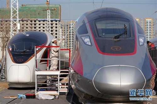 新华社北京12月24日电(记者樊曦)记者24日在中国铁路科技创新成就展上看到,时速350公里17辆长编组、时速250公里8辆编组、时速160公里动力集中等多款“复兴号”新型动车组首次公开亮相。