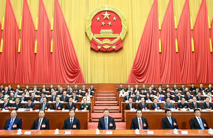 习近平、李克强、汪洋、王沪宁、赵乐际、韩正、王岐山和大会主席团成员在主席台就座。