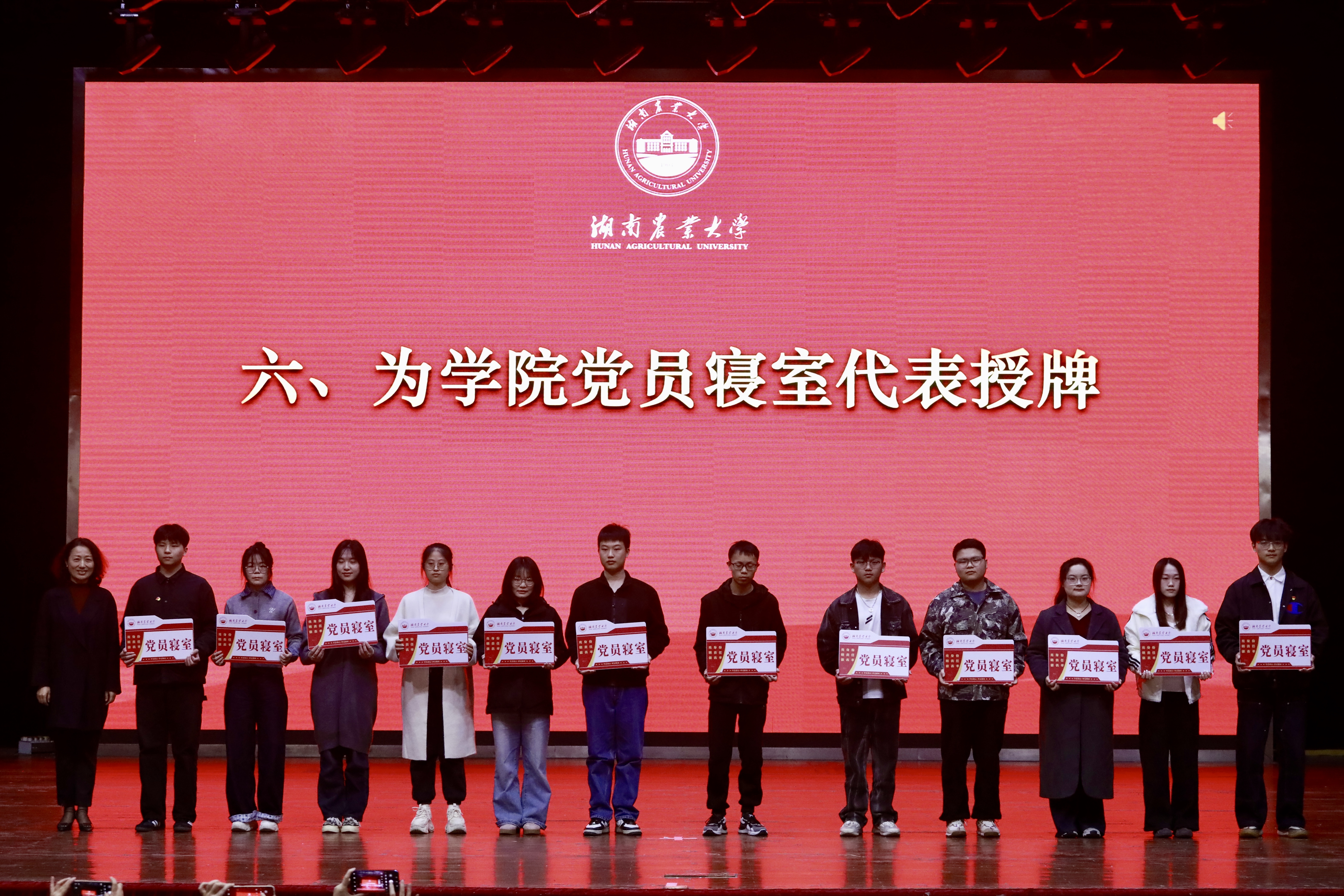 会上,宣传部、统战部常务副部长王健宣读《湖南农业大学2023-2024学年学风建设先进集体和个人表彰名单》。组织部常务副部长兼机关党委书记覃红燕为各学院党员寝室代表授牌。与会领导为受表彰的学风建设先进集体和个人、优秀学生宿舍楼栋长颁奖。