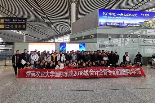英国当地时间2月22日17点30分,国际学院中外合作办学项目2018级会计企管专业“国际学期”师生顺利抵达英国伦敦。国际学院2018级会计、工商企业管理两个专业的全体同学在三位带队老师的带领下,将在英国格林威治大学开始为期3个月的“国际学期”学习。国际学院党委书记聂庆益、党委副书记邓益成与学院及英国格林威治大学中国办事处的老师代表一道在长沙黄花国际机场为师生们举行了欢送仪式。