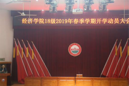 为了让同学们更好地端正学习态度、制定新学期的奋斗目标、合理地规划时间、养成良好学习习惯,2月28日上午,经济学院在学术报告厅召开18级开学动员大会,副书记吴峰老师与年级辅导员文晶老师主持本次活动。经济学院18级全体学生参与此次大会。