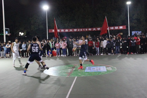 3月19日晚,动物科学技术学院男队与继续教育学院男队在十教前篮球场进行小组赛。动科院团委学生会部分成员及各班级部分同学到场为运动员加油助威。