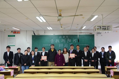 李四元老师和李宁枫老师在活动最后宣布本场“舌战浏阳河”辩论赛为18级动科四班略胜一筹。刘双获得优秀辩手称号。本次活动的顺利举行,增加了同学们对知识认知的广度与深度以及思维的敏捷性,也促进同学们扩宽视野、培养自身综合素质。至此,“舌战浏阳河”辩论赛完美落幕。