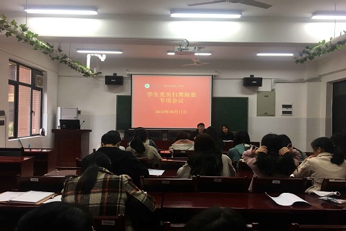 会议伊始,学生党支部副书记黄娟和陈辉凡向大家交代了学校党委组织部门关于推进扫黑除恶专项斗争的工作要点,随后带领大家学习了学校下发的《扫黑除恶专项斗争宣传资料》,分别从国家针对扫黑除恶专项斗争的总蓝图、基本原则、打击重点及相关法律法规等几大要点进行了详细说明。会议强调,当前扫黑除恶正处于向纵深发展的关键阶段,在高校中,特别是基层学生党支部组织,应当起先锋带头作用,通过各种方式加大专项斗争宣传力度,着重提高高校学生“扫黑除恶”的觉察意识和防范意识,为国家扫黑除恶专项斗争工作贡献力量。
