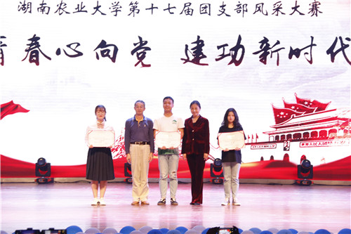 大赛在校艺术团的舞蹈《映山红》中闭幕,主持人公布各院得分情况及获奖结果,评委老师为获奖各班团支书颁奖。植保二班的节目《生的伟大,死得光荣》以92.11分的成绩斩获大赛二等奖。